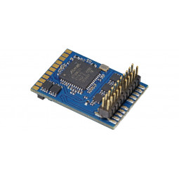 Modelo: Decoder D&H de 6 pin NEM-651 para locomotoras. Características: -Dimensiones: 8,5 x 11,7 x 1,8 mm -Capacidad de carga total: 1,0 A -Corriente máxima del motor: 1,0 A -Tensión máxima de control: 30 V -Salidas de función de luz: LV, LR (regulables): 150 mA cada una -Salidas de función:...