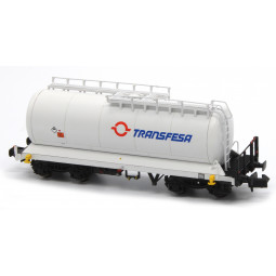 Sin stock Precio 29,71 € Sin stock Precio regular 31,95 €Modelo: Cisterna Zaes Transfesa Blanca - Tren de Anilina RENFE. Matrícula: Zaes 83 71 788 0 750-4 Este vagón es incluido en los tráficos de transporte de anilina de RENFE y, en muchas ocasiones, forma composiciones puras dedicadas al movimiento por ferrocarril de este producto.