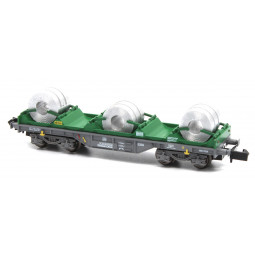 Sin stock Precio 37,95 €YA DISPONIBLE !! Modelo: Plataforma PortaBobinas MMBcev Renfe Mercancías, con carga de 3 bobinas. Matrícula: 32 71 476 5 151-4 E-RENFE Shmms MMBcev 254352