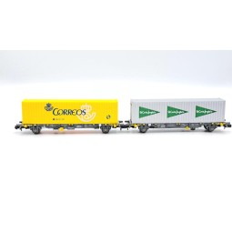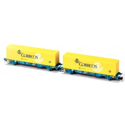 Sin stock Precio 37,95 €Modelo: Set 2 vagones plataforma MC3 RENFE, con contenedores "CORREOS".