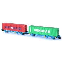 Sin stock Precio 37,95 €Novedad MFtrain AGOTADO Modelo: Set 2 portacontenedores RENFE - MCI - Intercontainer , con 2 contendores de 40 pies BOLUDA y NENUFAR. Matrícula: Lgnss 24 71 443 3 891-8Lgnss 22 71 443 3 090-8MCce 470 091