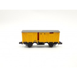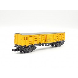Sin stock Precio 12,00 €Modelo: Vagón cerrado tipo J, Taller intervención RENFFE, decoración amarillo.