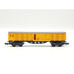 Sin stock Precio 39,00 €Modelo: Vagón de mercancías Renfe tipo ganadero, decoración amarillo.