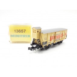 Sin stock Precio 15,00 €Modelo: Vagón cerrado con garita con puertas laterales funcionales, cervecero "KRUMBACH" de la DR.