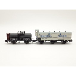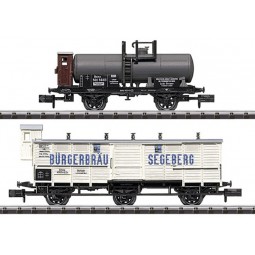 Sin stock Precio 35,00 €Modelo real: tren de mercancías prusiano basado en los siguientes prototipos de la Royal Prussian Railroad Administration (KPEV): telecabina con trampillas de techo abatibles y cabina de guardafrenos. Coche de cerveza con cabina de guardafrenos.
