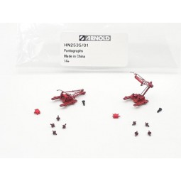 Recambio original Arnold. Set 2 pantógrafos, para locomotora eléctrica 252 Renfe Mercancías. Nota: Este juego de pantógrafos es el indicado para locomotora eléctrica 252, versión Renfe Mercancías Arnold Ref. HN2556