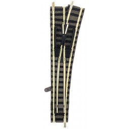 Modelo: Desvío en curva Izquierdo, con balasto, accionamiento manual. Nota: -La salida admite cambio de R1 a R2 y viceversa, 45º. -El desvío viene preparado para acoplar motor, para su accionamiento eléctrico.