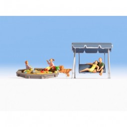 En stock Precio 12,59 € En stock Precio regular 13,99 €Set de personajes, Familia en el jardín de casa, niños en parque infantil con su perro, y padres en columpio balancín. Características: Los personajes son de un acabado excelente, ya que son pintados a mano.