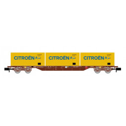 En stock Precio 55,81 € En stock Precio regular 64,90 €YA DISPONIBLE Modelo: Vagón portacontenedores 4 ejes MMC3 Renfe, con 3 contenedores de 20 pies "Citroën".