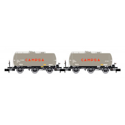 En stock Precio 61,43 € En stock Precio regular 81,90 €OFERTA ESPECIAL Modelo: Set de 2 vagones cisternas de 3 ejes RENFE, decoración gris, «Campsa».