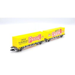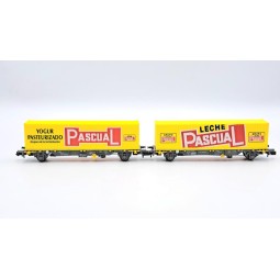 En stock Precio 29,36 € En stock Precio regular 30,90 €Modelo: Set 2 plataformas portacontenedores MC Renfe Mercancías. -Con contenedores "PASCUAL". -Edición exclusiva.