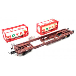 Sin stock Precio 25,29 € Sin stock Precio regular 38,90 €Modelo: Vagón tipo Sdgkms 707 de la DB Cargo, con contenedores cisterna "HOYER" de 20". -Vagón válido para transporte de contenedores y vehículos industriales. -Con ejes DC para conducción en vía de corriente continua. -Chasis metálico.