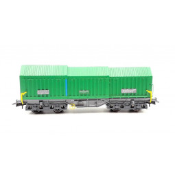 Sin stock Precio 34,32 € Sin stock Precio regular 42,90 €Modelo: Vagón plataforma canguro con 2 cajas autoportantes "HUPAC" de la SBB. -Chasis metálico.