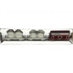 Sin stock Precio 59,00 €Modelo: Set de 3 vagones de mercancías “QUARZWERKE” de la DB. -Cinemática con cajetín normalizado NEM-362 para cabezales de enganche.