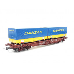 Sin stock Precio 37,90 € Sin stock Precio regular 39,90 €Modelo: Vagón plataforma canguro Sdgkmss RENFE, con 2 cajas autoportantes "DANZAS". Matrícula: 8171 458 9027-0 -Cinemática con cajetín normalizado NEM-362 para cabezales de enganche.