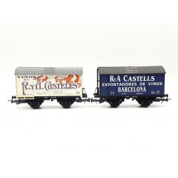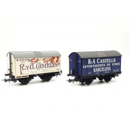 Sin stock Precio 227,50 € Sin stock Precio regular 325,00 €Modelo: Set de 2 vagones cuba para vino " R. y A. CASTELLS". -Cinemática con cajetín normalizado NEM 362 para enganches. -Este conjunto pertenece a una serie limitada de 500 unidades, numerada y fabricada por Electrotren para la MATEY -Con certificado: Set Nº 00414