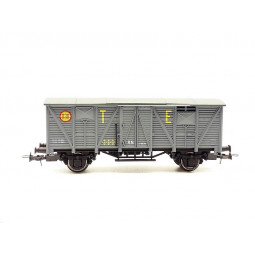 Modelo: Vagón cerrado tipo J RENFE, decoración gris "T.E.". -Matrícula: JFV-303.357 -Cinemática con cajetín normalizado NEM-362 para cabezales de enganche.