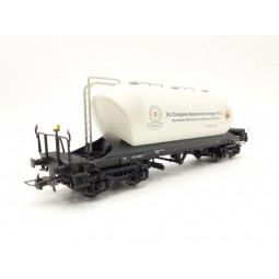 En stock Precio 34,00 €Modelo: Vagón tolva RENFE, XLI congreso F.E.A.A.F. "Asociación Valenciana de Amigos del Ferrocarril" para el transporte de pulverulentos. -Matrícula: 26 71 097 0 180 -0 -Cinemática con cajetín normalizado NEM 362 para enganches.
