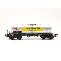 En stock Precio 31,26 € En stock Precio regular 32,90 €Modelo: Vagón cisterna tipo Zas de la SNCF "LES BECASSIERES", decoración plateado chasis negro. -Matrícula: 33 87 796 0 176-8 -Cinemática con cajetín normalizado NEM 362 para enganches.