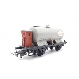 En stock Precio 39,00 €Modelo: Vagón cisterna 2 ejes con garita RENFE, color gris logotipo "Esso". -Cinemática y enganche integral, sistema de enganche antiguo de Electrotren.