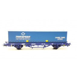Sin stock Precio 65,00 €Modelo: Vagón plataforma Rmmns RENFE, con contenedor "Transfesa".