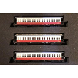 Sin stock Precio 144,90 €Modelo: Set de 3 coches costa "Red Nacional de los Ferrocarriles Españoles", decoración rojo/crema.