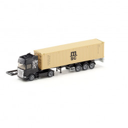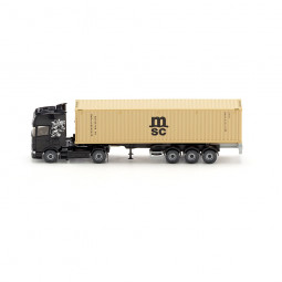 En stock Precio 37,99 €Modelo: Cabeza tractora SCANIA R-420, con semirremolque portacontenedores, con contenedor 40 pies "MSC". -Color: Negro -Periodo: 2008 - 2015