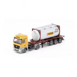 En stock Precio 31,43 € En stock Precio regular 36,98 €Modelo: Cabeza tractora Mercedes-Benz Actros, con semirremolque portacontenedores, con contenedor cisterna de 30 pies "BERTSCHI". -Color: Amarillo/ Gris. -Periodo: 2012 - 2015
