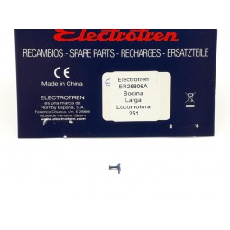 En stock Precio 1,25 €Recambio original Electrotren. Bocina larga, para locomotora eléctrica 251 Renfe. -Contenido: 1 Bocina. -Nota: Valido para locomotora eléctrica 251 Renfe, versión azul, de Electrotren.