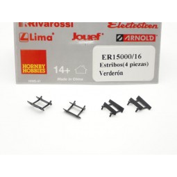 En stock Precio 4,90 €Recambio original Electrotren: Set de 4 estribos de puerta, para coches verderones Renfe. -Contenido: 2 estribos izquierdos y 2 estribos derechos. -Nota: Valido para todos los modelos de coches "Verderón".