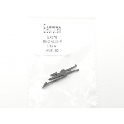 En stock Precio 5,50 €Recambio original Electrotren. Enganche entre cabeza y primer coche, para tren AVE S-102 y S-112 Renfe. -Contenido: 1 Enganche. -Nota: Enganche para cinemática de cabezas y primer coche con cajetín normalizado NEM 362, valido para AVE S-102 y S-112 de Electrotren.