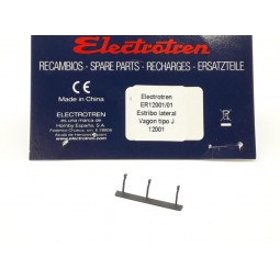 En stock Precio 1,00 €Recambio original Electrotren. Estribo lateral, para vagón cerrado 2 ejes tipo J Renfe. Color: Negro. Contenido: 1 Estribo lateral. Nota: Válido para vagón cerrado 2 eje tipo J Renfe, Electrotren 12001.
