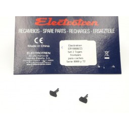 En stock Precio 2,45 €Recambio original Electrotren. Set de 2 topes, para coches serie 8000 Renfe. Contenido: 1 tope derecho y 1 tope izquierdo. Color: Negro. Nota: Válido para coches y furgones serie 8000 Renfe de Electrotren.