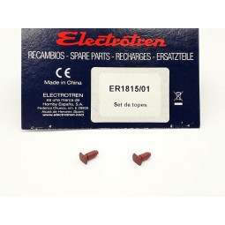 En stock Precio 1,20 €Recambio original Electrotren. Set de 2 topes, para vagón cerrado 2 ejes tipo ORE Renfe. -Contenido: 2 Topes. -Color: Rojo oxido.