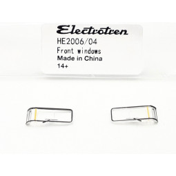 En stock Precio 8,90 €Recambio original Electrotren. Set de ventanas frontales para locomotora Renfe 269, decoración Milrayas. Contenido: 1 ventana frontal derecha y 1 ventana frontal izquierda.