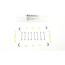 En stock Precio 3,50 €Recambio original Electrotren. Set de pasamanos y espejos retrovisores para locomotora 269 / 279 Renfe, decoración Taxi. -Contenido: 2 pasamanos frontales, 8 pasamanos de puerta, 6 pasamanos pequeños y 4 espejos.