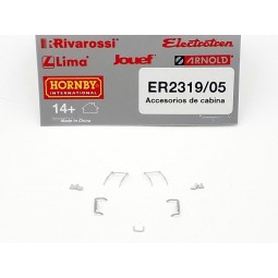 Sin stock Precio 59,90 €Recambio original Electrotren. Set accesorios de cabina, para locomotora diésel 352 Talgo Renfe. Contendio: 2 Espejos, 2 Limpiaparabrisas, 2 gálibos superior de cabina, y 1 pasamanos frontal. Nota: El set de accesorios solamente es válido para la versiones de la 352 de 2 ventanas frontales, como...
