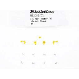 En stock Precio 4,75 €Recambio original Electrotren. Accesorios de techo para locomotora Renfe 279, decoración Taxi. Contenido: 2 Bocinas, 1 Antena de techo, y 8 argollas de techo.