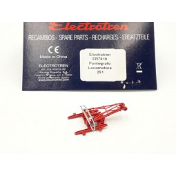 En stock Precio 13,50 €Recambio original Electrotren. Pantógrafo monobrazo, para locomotora eléctrica 251 Renfe. -Contenido: 1 Pantógrafo monobrazo. -Nota: Valido para todas las versiones de locomotoras 251 Renfe de Electrotren.