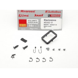 En stock Precio 3,50 €Recambio original Electrotren. Set de accesorios frontales para locomotora 269 / 279 Renfe. -Contenido: 1 Cajetín de enganche normalizado, cabezal de enganche, set de mangueras, set de enganches decorativos y 1 enganche decorativo funcional.