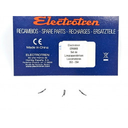 En stock Precio 14,90 €Recambio original Electrotren. Juego de tornillos tapa inferior bogie, locomotora 269 Renfe. -Contenido: 2 tornillos.