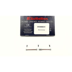 En stock Precio 5,90 €Recambio original Electrotren: Set de bielas para locomotora diésel 303 Renfe. -Contenido: 1 juego de bielas, más 3 tornillos de sujeción de bielas. -Nota: Valido para todas las versiones del 303 de Electrotren, el juego de bielas es reversible, vale para el lado derecho e izquierdo.