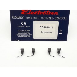 En stock Precio 7,90 €Recambio original Electrotren: Set de areneros, para locomotora diésel 303 Renfe, versión verde/amarillo. -Contenido: 2 areneros derechos, y 2 areneros izquierdos. -Nota: También es valido para otras versiones del 303 de Electrotren, lo único que difiere el color.