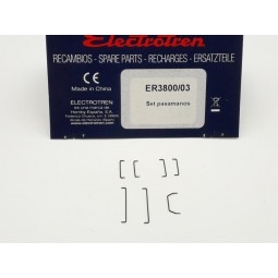 En stock Precio 8,90 €Recambio original Electrotren: Set pasamanos de acceso puertas, para locomotora diésel 303 Renfe. -Contenido: 7 pasamanos. -Nota: Valido para todas las versiones 303 de Electrotren.