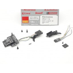 En stock Precio 29,90 €Recambio original Electrotren. Set enganches eléctrico + placa PCB principal, para coche motor y coche cola de automotor diésel Ferrobús Renfe 591. Contenido: Placa principal con conector NEM-660 para montar decoder de 21 pin, la placa lleva un falso decoder dumy para el funcionamiento en...