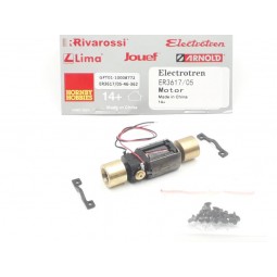 En stock Precio 15,90 €Recambio original Electrotren. Motor con soportes, para coche motor de automotor diésel Ferrobús Renfe 591. Contenido: 1 Motor de 5 polos con volantes de inercia, 2 soportes de motor, tornillería sujeción motor. Nota: Válido para todas la versiones de automotor Ferrobús Renfe 591 de Electrotren.