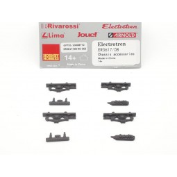 En stock Precio 12,90 €Recambio original Electrotren. Set de accesorios de bogie coche motor, para automotor diésel Ferrobús Renfe 591. Nota: Válido para todas la versiones de automotor diésel Renfe 591 de Electrotren.