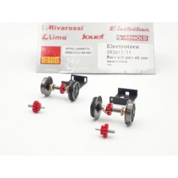 En stock Precio 10,90 €Recambio original Electrotren. Juego de 2 ejes de rueda con engranaje, para coche motor de automotor diésel Ferrobús Renfe 591. Contenido: 2 ejes con engranaje y aros de adherencia, 2 engranajes intermediarios, y 2 tapas de cierre ejes. Nota: Válido para todas las versiones de automotor diésel...