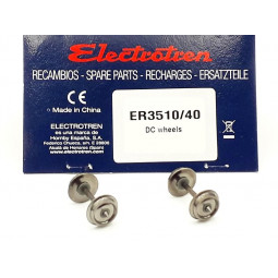 En stock Precio 12,90 €Recambio original Electrotren. Juego ejes de ruedas con pestaña alta coche no motorizado automotor 591 Renfe Ferrobús. -Estos ejes no son válidos para circular por vías de código 75. -Válidos para DC y AC. -Indicados para circuitos de vías AC.