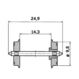 En stock Precio 32,90 €Recambio original Electrotren. Eje ruedas DC, para coche no motorizado automotor diésel 594 TRD Renfe. -Contenido: 2 ejes de rueda. -Medidas: Diámetro de rueda (Rodadura) 9,8 mm, distancia interior entre ruedas 14,3 mm, largo total del eje 24,9 mm.